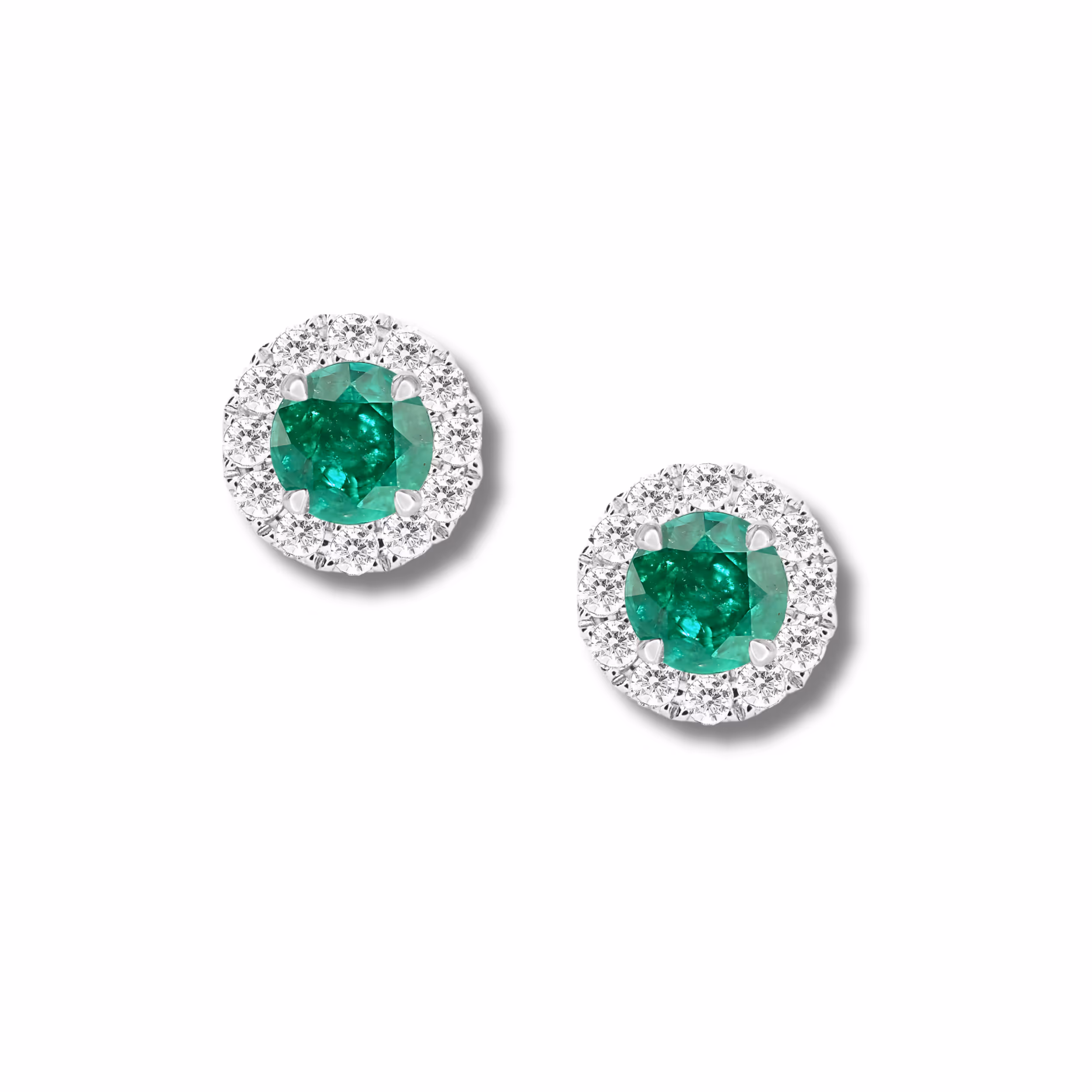 Large Emerald Studs with Diamond Halos