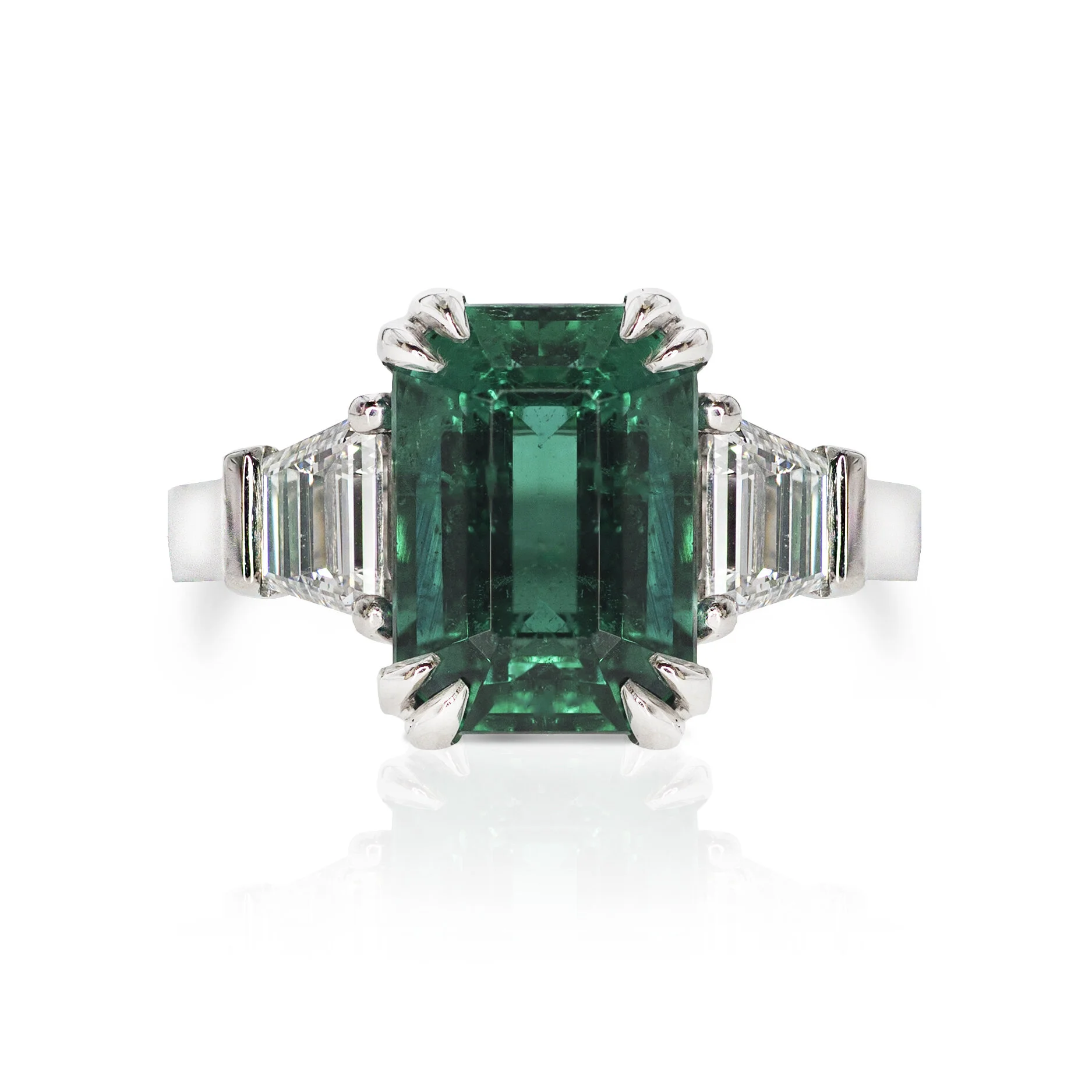 Emerald & Trapezoid Diamond Trilogy Ring