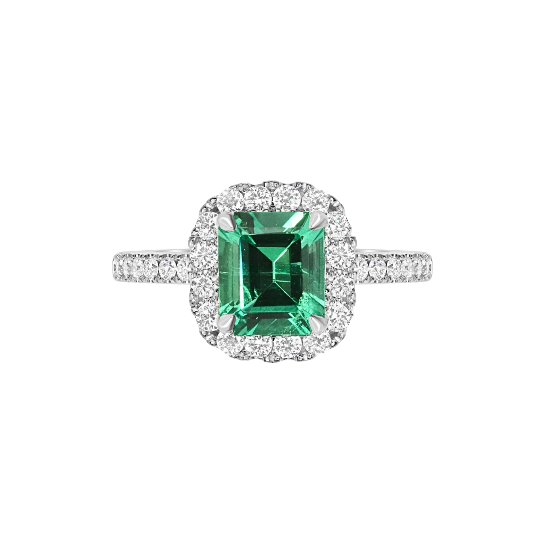 Emerald Ring with a Diamond Halo & Band