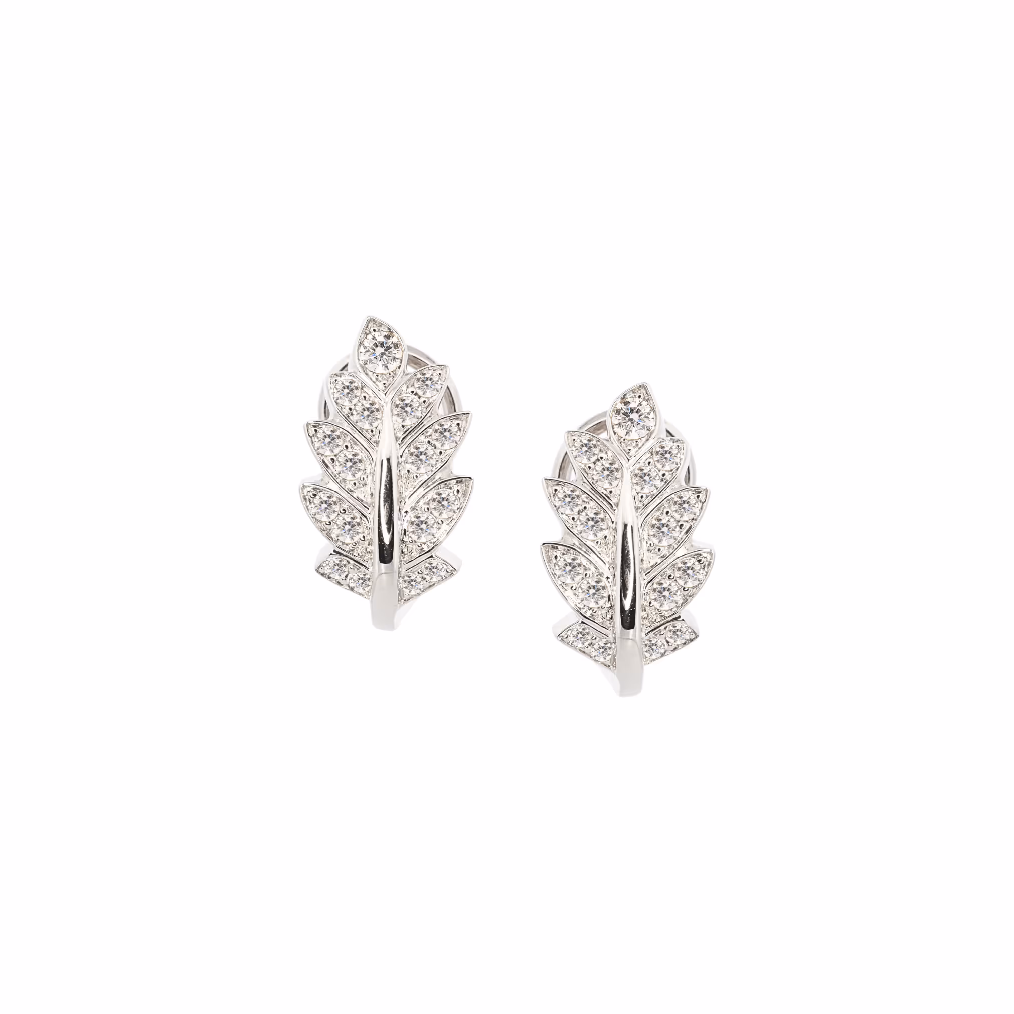 An elegant form of artistic expression, presented through a pair of 18kt Yellow Gold leaf huggies with exceptional quality natural diamonds.