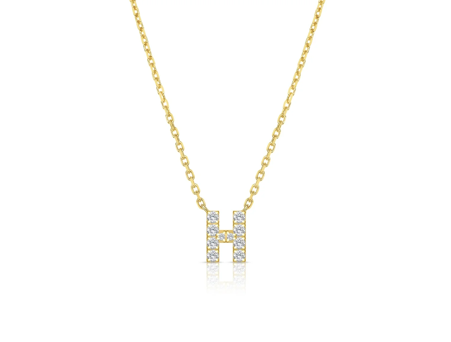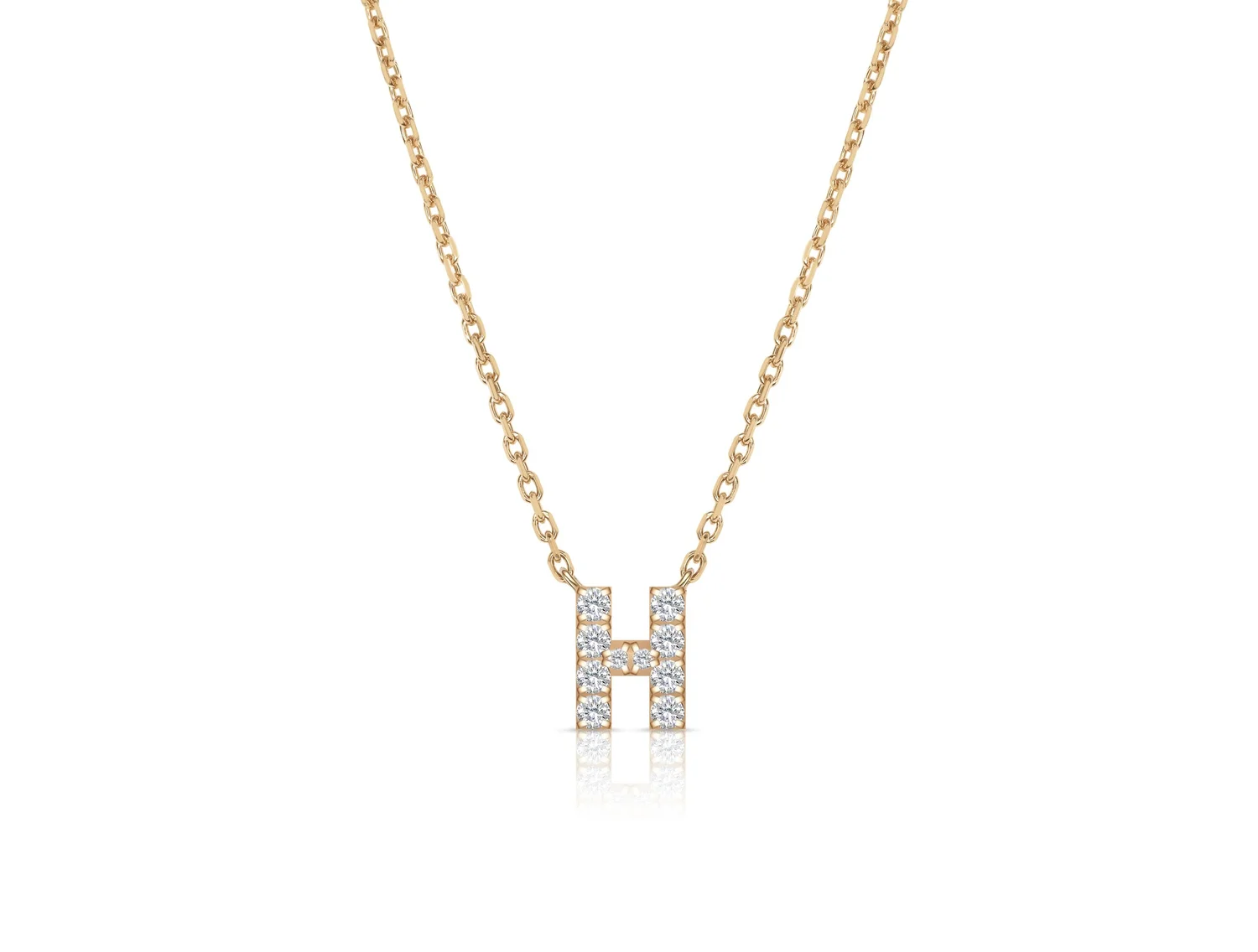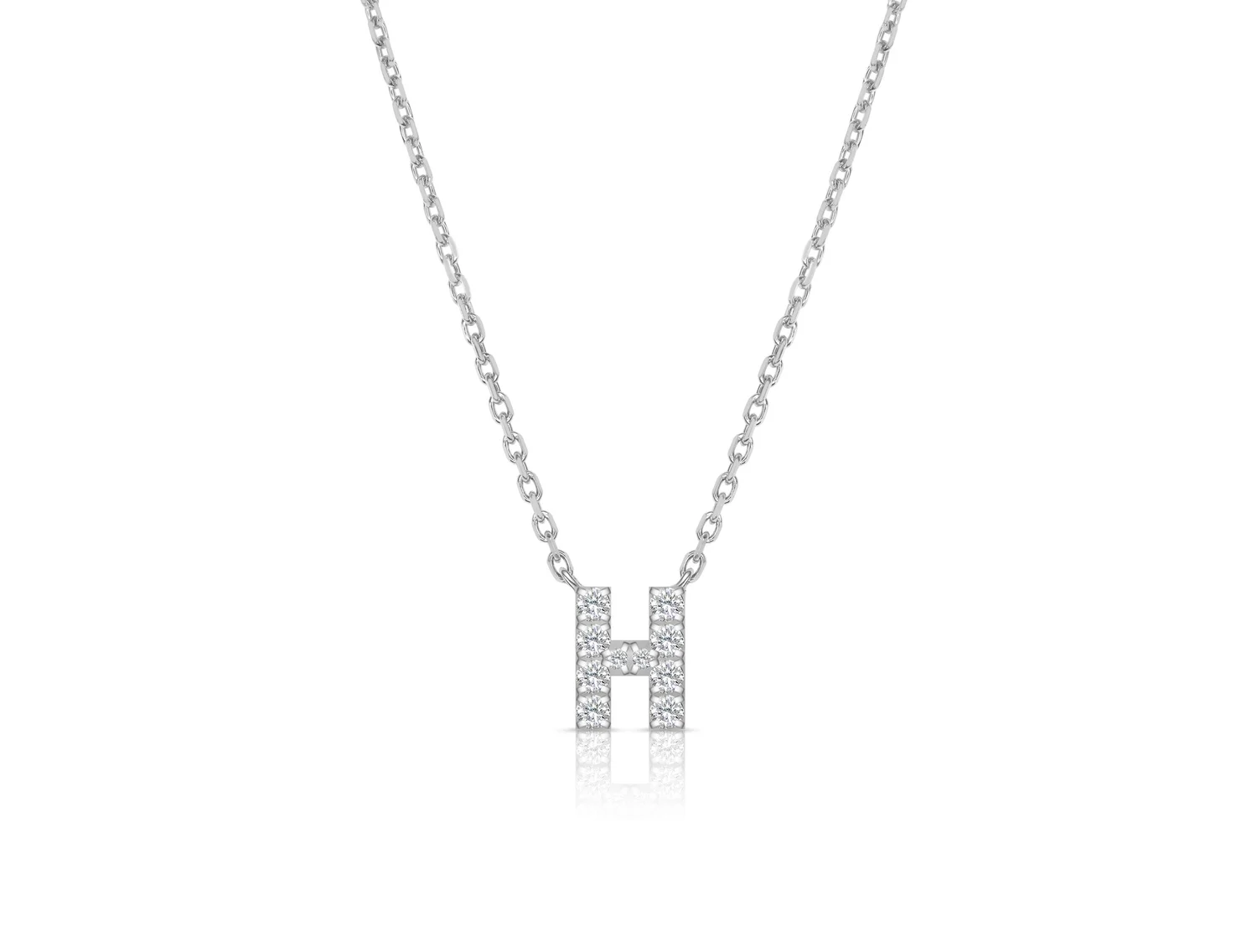 An elegant letter "H" stacking necklace, adjustable from 42-45cm. Set with radiant brilliant cut white natural diamonds of a D-E/VVS-VS grading.